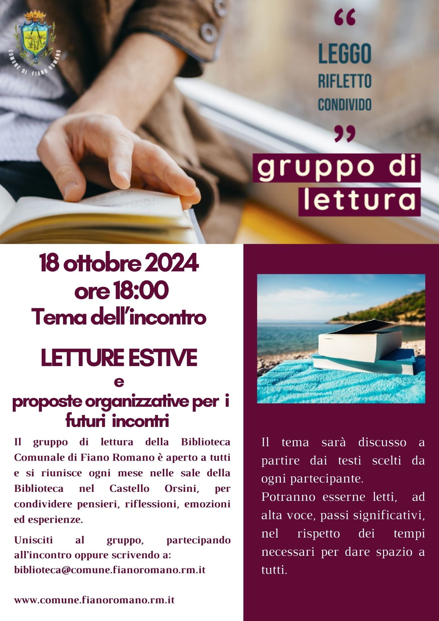 Unisciti al gruppo, partecipando all’incontro oppure scrivendo a biblioteca@comune.fianoromano.rm.it